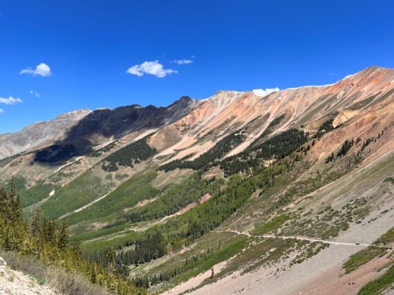 The Alpine Loop is a 65-mile historic backcountry 4X4 route which connects the small mountain communities of Ouray, Silverton, and Lake City.You’ll find remnants of the region’s mining past across the landscape, telling the story of a bygone era in this rugged, often hostile environment. Between Engineer (12,780’) and Cinnamon (12,620’) passes, the exposed ridge road offers views for miles in all directions.